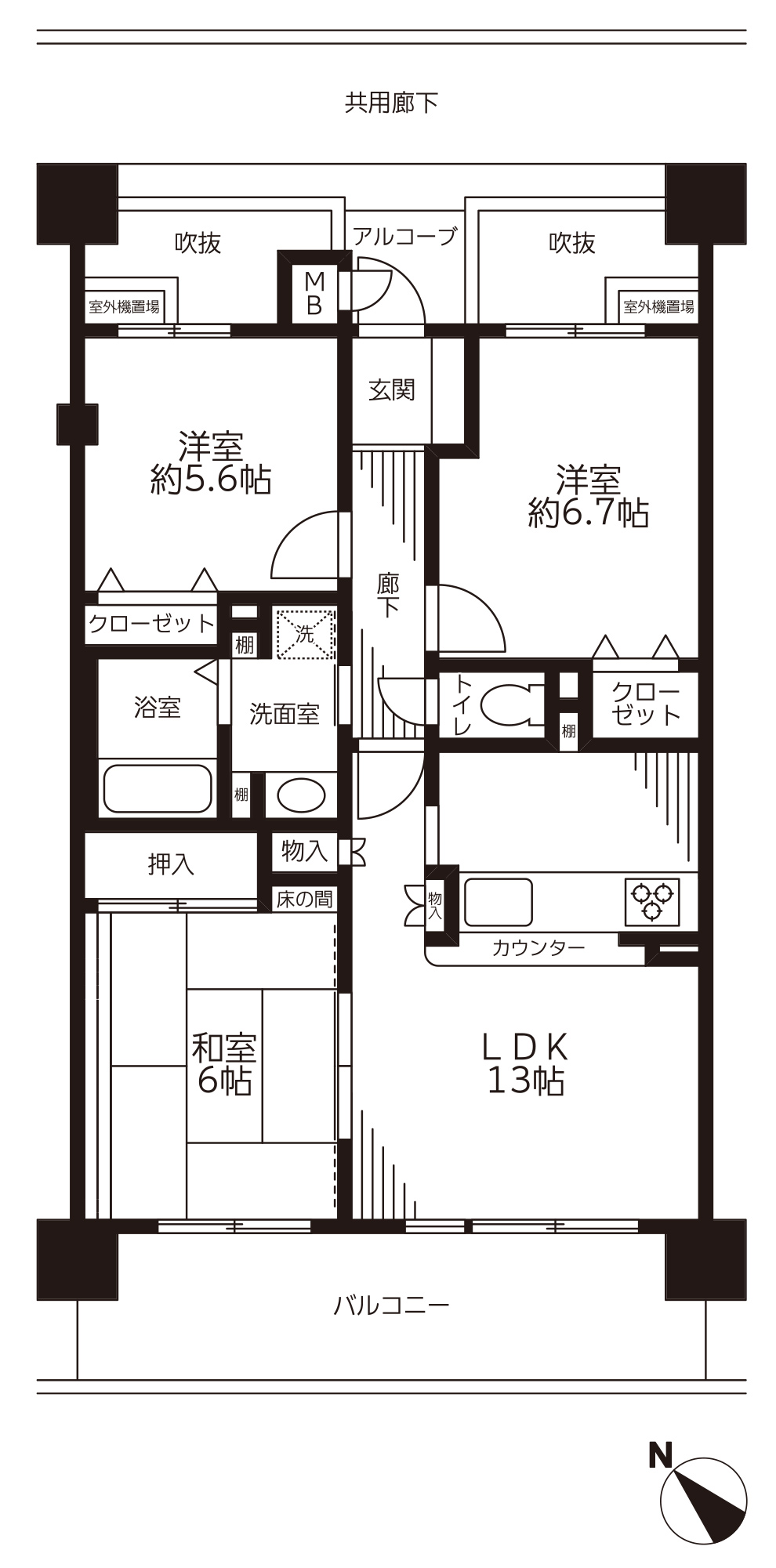 面積 専有面積: 70.7㎡、バルコニー面積: 12.6㎡